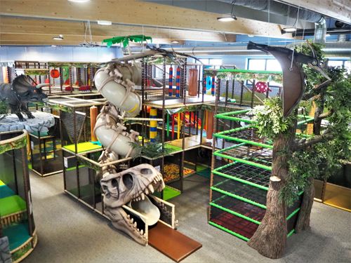 Neben unserem Naturerlebnispark gibt es die KIDS WORLD by IKUNA – ein 1000 m² großer Indoor-Park. Spiel, Spaß & Action endet im IKUNA nicht mit der kalten oder nassen Jahreszeit, sondern geht weiter im Indoor-Park. Bereits beim Betreten lassen die atemberaubende Wandbemalung und die lebensechten Dinosaurierskulpturen in eine fantastische Welt eintauchen und sorgen für ein besonders fantasievolles Spielerlebnis.