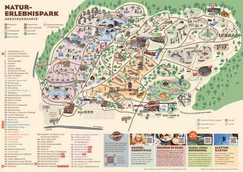 Unser Parkplan bietet eine Übersicht über alle Attraktionen, Spiel- und Ruhebereiche, Gastronomieangebote, Sanitäranlagen sowie Ein- und Ausgänge. Nutze die Karte, um deinen Tag optimal zu planen, die Lieblingsstationen schnell zu finden und kein Highlight zu verpassen.