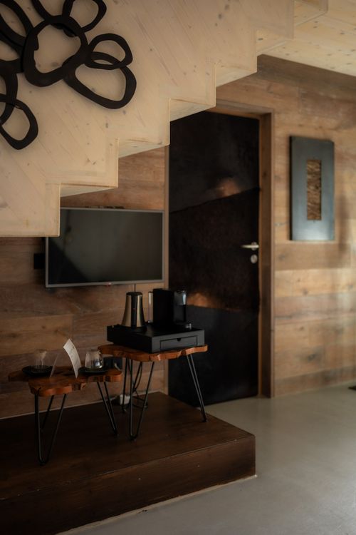 Ihr werdet die Nächte in der Tipi-Suite mit seinen zwei Stöcken lieben. Die edle Holzausstattung in unterschiedlichen Braun- und Grautönen sowie die geschmackvolle Dekoration vermitteln eine wunderbare Wohlfühlatmosphäre.
